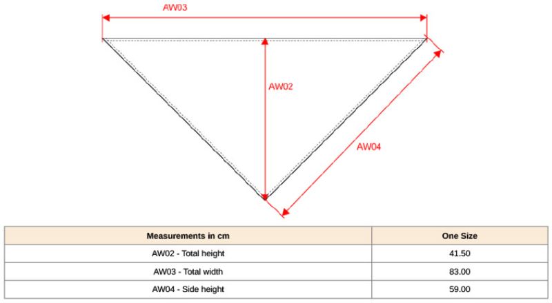 Dreiecktuch, offene gerollte Säume, einfache Kappnaht, widerstandsfähiger, geschmeidiger Stoff, Maße: 83x62x62cm, 30° waschbar, nicht bügeln, nicht trocknergeeignet, nicht chemisch reinigen