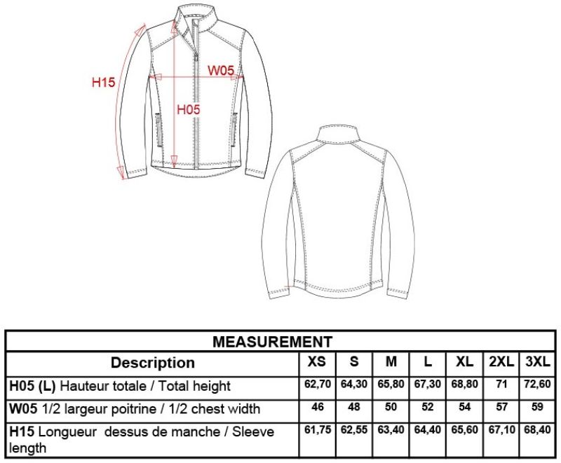 300g/m², Außen: 95% Polyester, 5% Elasthan, Innen: 100% Polyester Microfleece