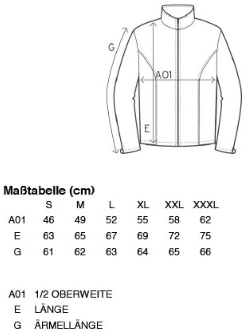 Stehkragen, Ärmelbündchen mit Elasthan, durchgehender und verdeckter Reißverschluss, 2 Seitentaschen mit Reißverschluss, Innenseite in Kontrastfarbe, beidseitige Antipilling Ausrüstung, 30° waschbar, nicht trocknergeeignet