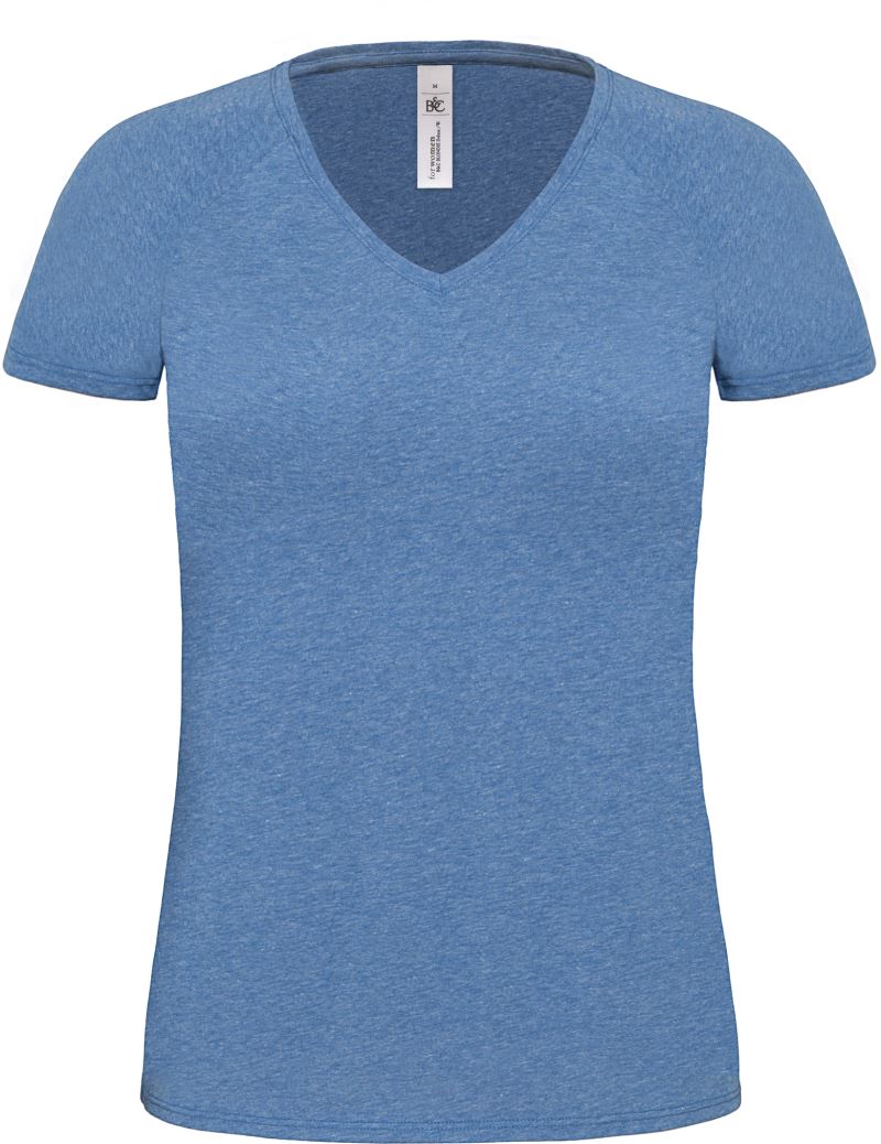 Femininer V-Ausschnitt, Nackenband, Raglanärmel, Doppelziernaht am Bund unten und am Ärmelbündchen, meliertes Garn
