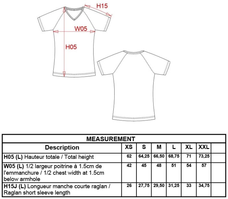 Taillierter Schnitt, atmungsaktiv und schnelltrocknend, kleiner V-Ausschnitt, Nackenband, Raglanärmel mit verdeckten Nähten, Doppelnähte an Ärmel und Bündchen, 40° waschbar, nicht trocknergeeignet, nicht chemisch reinigen