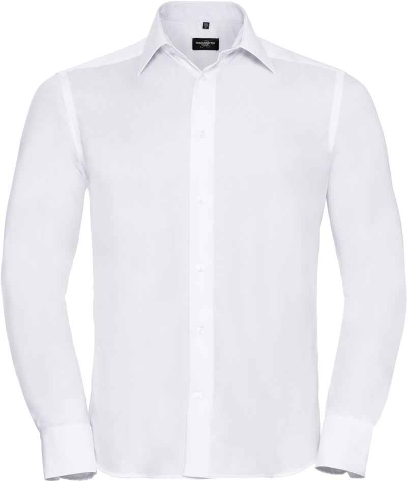 Taillierter Schnitt, halb ausgestellter stäbchenverstärkter Kragen, abgeschrägte Manschetten, wahlweise mit Manschettenknöpfen tragbar, abgerundeter Saum, Ersatzknöpfe, ohne Brusttasche, innovativer Stoff der das Hemd den ganzen Tag frisch und in Form hält, bügelfrei, 40° waschbar, trocknergeeignet