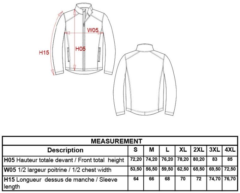 300g/m², Außen: 95% Polyester, 5% Elasthan, Innen: 100% Polyester Microfleece