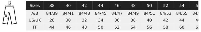 | Grösse | (54), (38), (40), 42, 44, 46, 48, 50, 52, 56 |