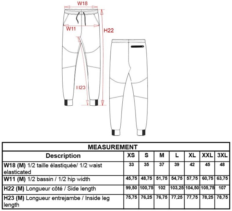 Schmale Passform, elastischer Bund mit 2-farbigem Kordelzug, schmaler Beinabschluss mit Elastikeinsatz in Kontrastfarbe, Knieeinsätze, 1 thermogeschweißte Reißverschlusstasche hinten, 2 Fronttaschen mit Jerseyfutter in 65% Polyester, 35% Baumwolle, 40° waschbar, nicht trocknergeeignet, nicht chemisch reinigen