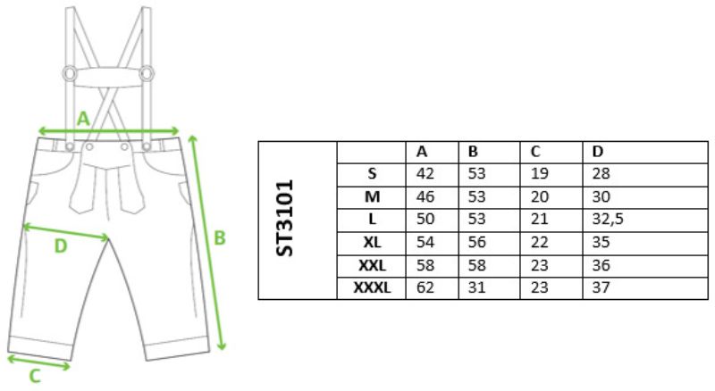Traditionelle kurze Lederhose, inkl. Träger und Brustschild, Stickereien an den Seiten und vorne