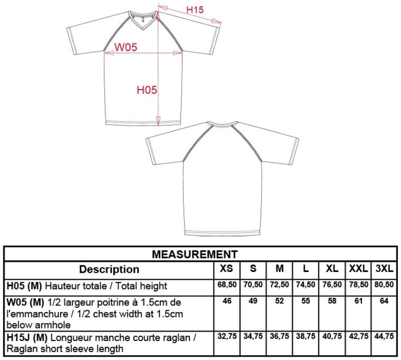 Atmungsaktiv und schnelltrocknend, kleiner V-Ausschnitt, Nackenband, Raglanärmel mit verdeckten Nähten, Doppelnähte an Ärmel und Bündchen, 40° waschbar, nicht trocknergeeignet, nicht chemisch reinigen