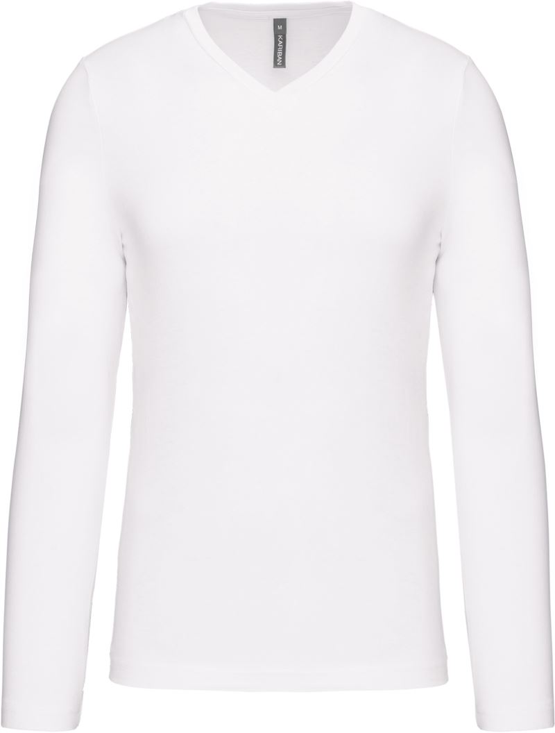 Taillierter Schnitt, glatt eingefasster V-Ausschnitt, Nackenband in Kontrastfarbe (grau) bei farbigen und weiß bei weißen Shirts, Doppelnähte, 40° waschbar, trocknergeeignet bei niedriger Temperatur, nicht chemisch reinigen