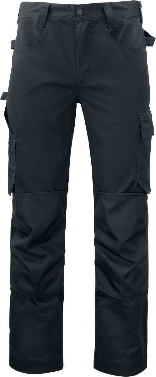 Diverse Werkzeugtaschen, 2 Seitentaschen, Zollstocktasche, Knietaschen zum Einsetzen von Knieschonern, 2 Gesäßtaschen mit Klettverschluss, 2 Hammerschlaufen, Verstärkung an Knien und Zollstocktasche, reflektierende Details, 60° waschbar, Schonwäsche, nicht trocknergeeignet, Größen (42-60) Art.Nr. 64.532M, (84-120) Art.Nr. 64.532S
