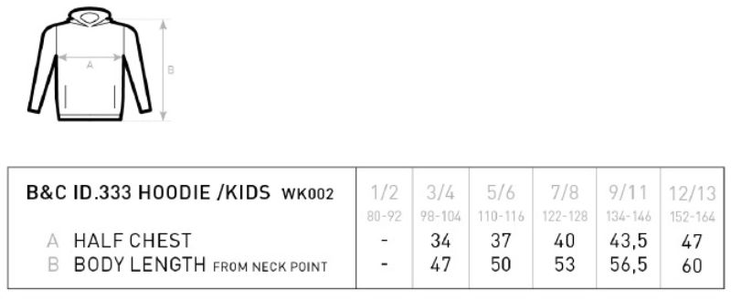 Klassischer Schnitt, Kapuze mit Single Jersey Futter, 1×1 Rippstrick an Ärmel und Bund mit Elasthan, Kängurutasche, versetzte Nähte auf der Schulter, Oberfläche aus 100% Baumwolle, innen angeraut, neutrales Größenlabel, 30° waschbar, trocknergeeignet bei niedriger Temperatur
