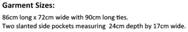Brusttasche mit Reißverschluss, 2 Seitentaschen, Taschenmaß: 24x17cm, Nähte in Kontrastfarbe, Stoffbänder: 90cm lang, Stoffband mit Messingschnalle als Verschluss, Ösen und Nieten Details, Länge: 86cm, Breite: 72cm, Easy Care, Industriewäsche 85° waschbar, 60° waschbar, trocknergeeignet bei niedriger Temperatur, nicht chemisch reinigen