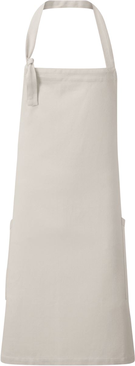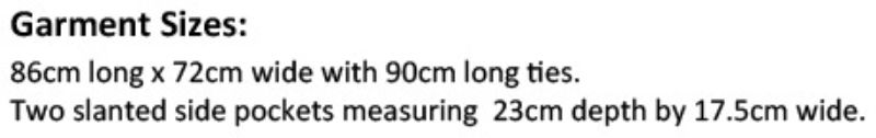 Hergestellt aus recyceltem Denim Material, geknotetes Nackenband zur Längenverstellung, 2 Seitentaschen, Taschenmaß: 23×17,5cm, Nähte in Kontrastfarbe, Stoffbänder: 90cm lang, Länge: 86cm, Breite: 72cm, 60° waschbar, nicht trocknergeeignet