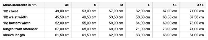 | Grösse | L, M, S, XL, XS, XXL |