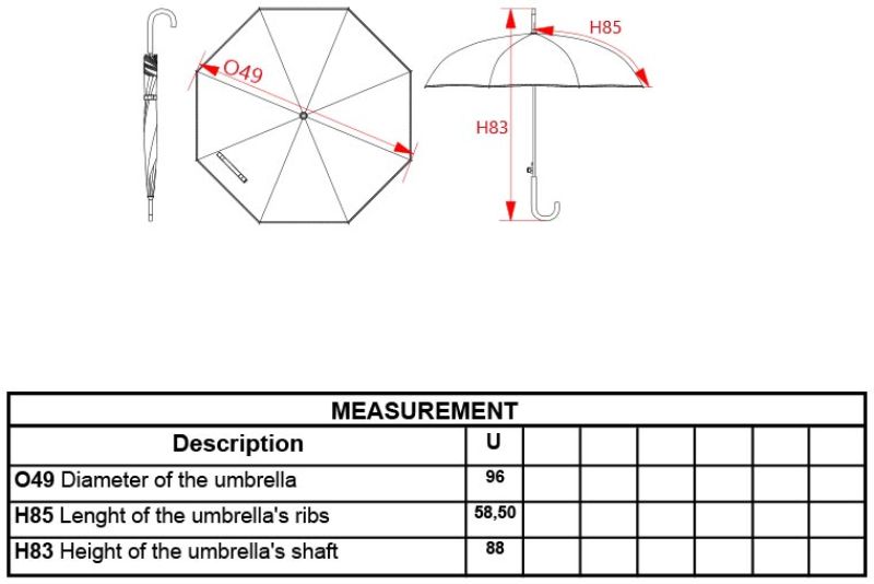 Holzschaft, J-Griff aus Holz, weiße Nickelspitzen, schwarzer Metallrahmen, Automatik-Funktion, Durchmesser: 96cm