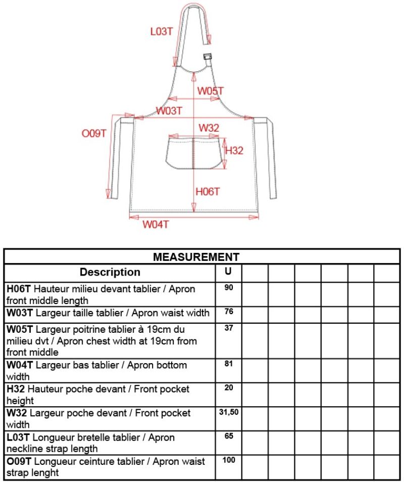 Halsschlaufe mit Metallschnalle zur Längenverstellung, große Fronttasche mit 2 Fächern, Maße: 90x76cm, Bauchtasche: 20cm breit, 31,5cm lang, 60° waschbar, Industriewäsche 85° waschbar, trocknergeeignet bei niedriger Temperatur