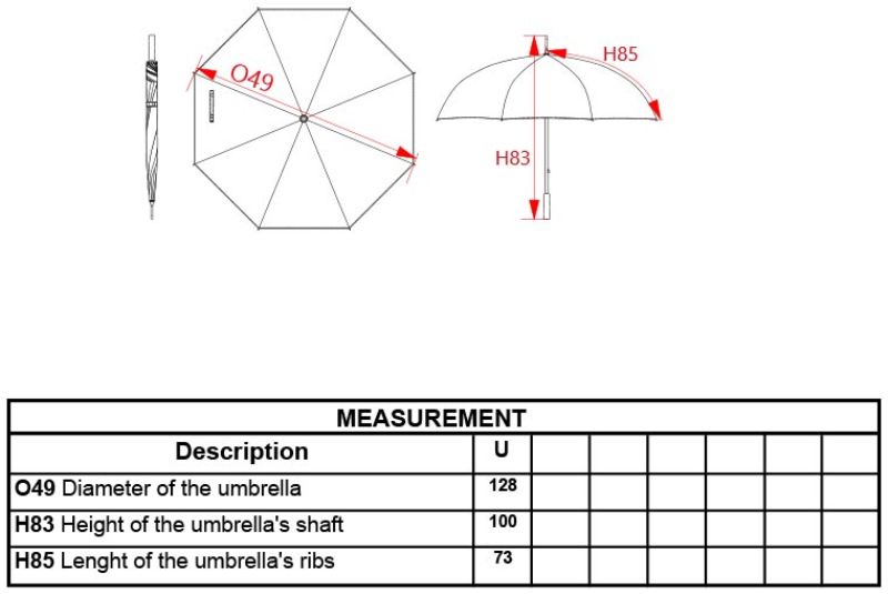 EVA Griff, Fiberglas Rahmen und Stock, Kunststoffspitzen, sturmsicher, REACH Standard, manuelle Öffnung, Durchmesser: 128cm