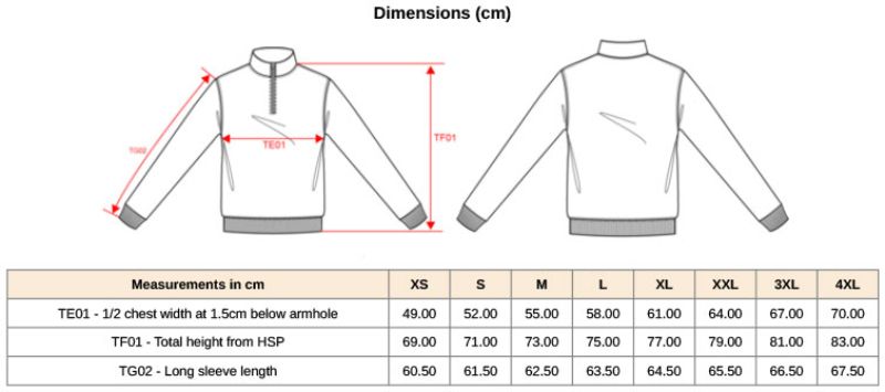 Stehkragen mit 1/4 Reißverschluss, Set-In Ärmel, Rippstrickbündchen an Ärmel und Saum, innen angeraut, 40° waschbar, nicht trocknergeeignet, nicht chemisch reinigen