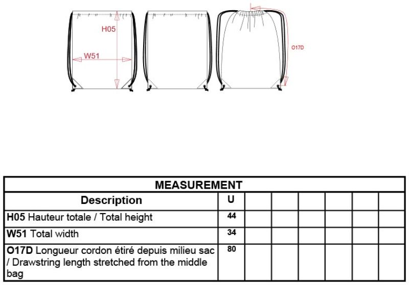 Kordelzug, verstärkte Ecken mit Metallösen, Fassungsvermögen: 13l, Maße: 34x44cm, nicht waschen