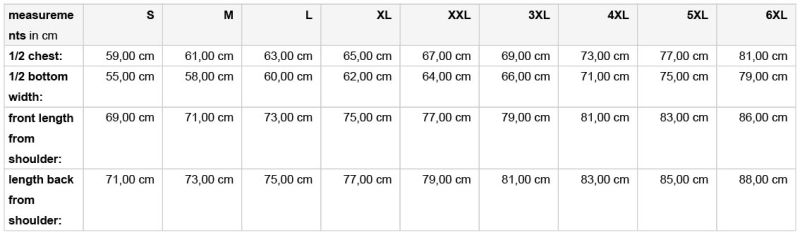 260g/m², Außen: 65% Polyester, 35% Baumwolle, Einsätze: 100% Polyamid