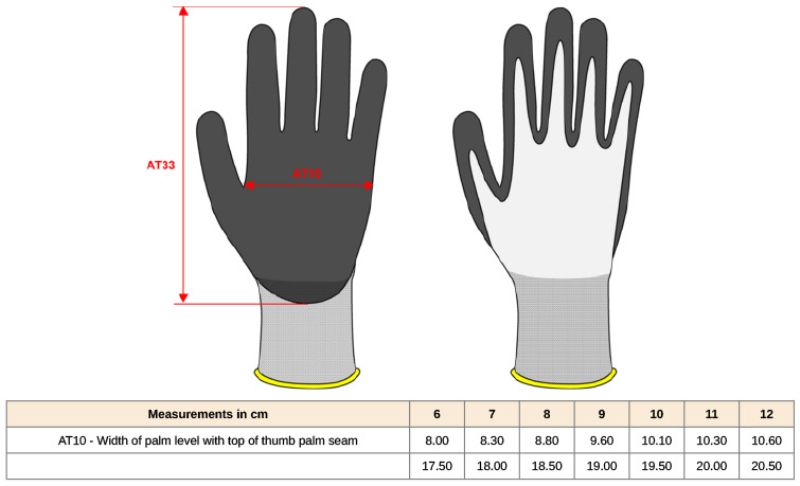 15 gauge, Polyamid, Elasthan, Handfläche und Finger: Nitril-Mikroschaumbeschichtung