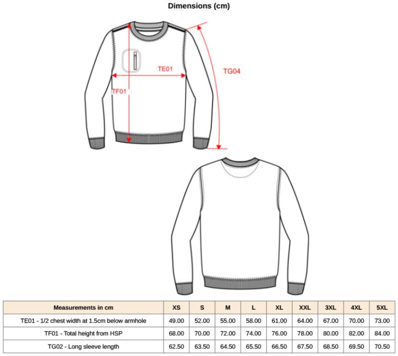 Slim Fit Schnitt, Rundhalsausschnitt in 1×1 Rippstrick, Reißverschluss in Kontrastfarbe, Nylon Reißverschluss, 1 Brusttasche rechts mit Reißverschluss, Doppelnaht um Tasche, Single Jersey Halbmond am inneren Rückenteil, Paspel in Kontrastfarbe an Schultern und Krageninnenseite, Tear Away Label, 60° waschbar, trocknergeeignet bei niedriger Temperatur, nicht chemisch reinigen